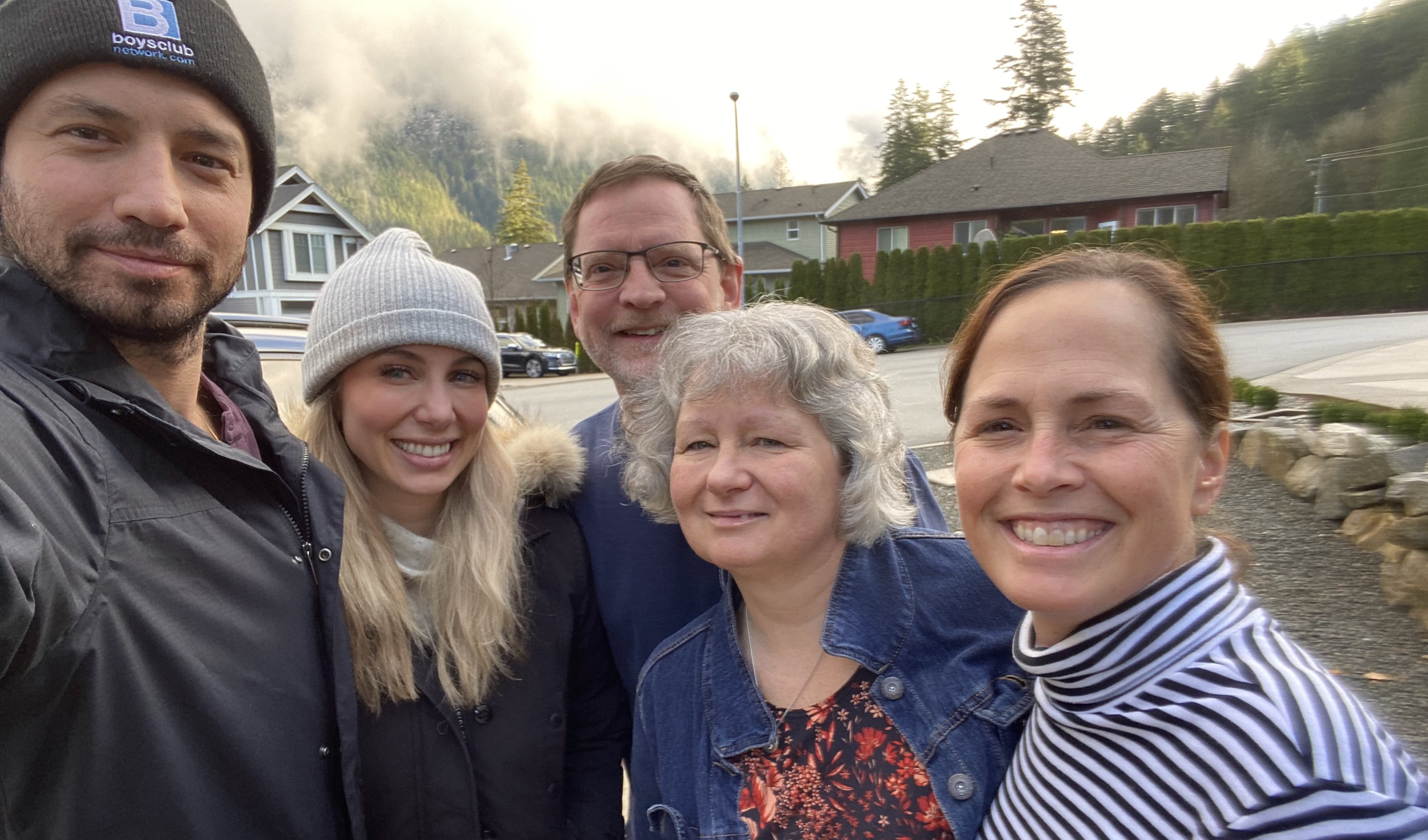 Leanne Dale (second from left) was among 1,200 travellers stranded in Hope, B.C., during mid-November's severe weather event.