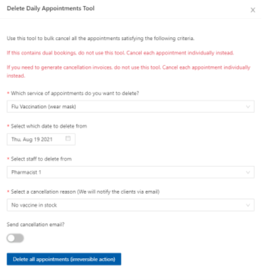 - Email or SMS (if your Online Booking Platform subscription has SMS enabled) those who did not complete their COVID-19 pre-screening and/or Vaccine Screening forms (by going to Scheduler, clicking on their appointment and clicking Remind).